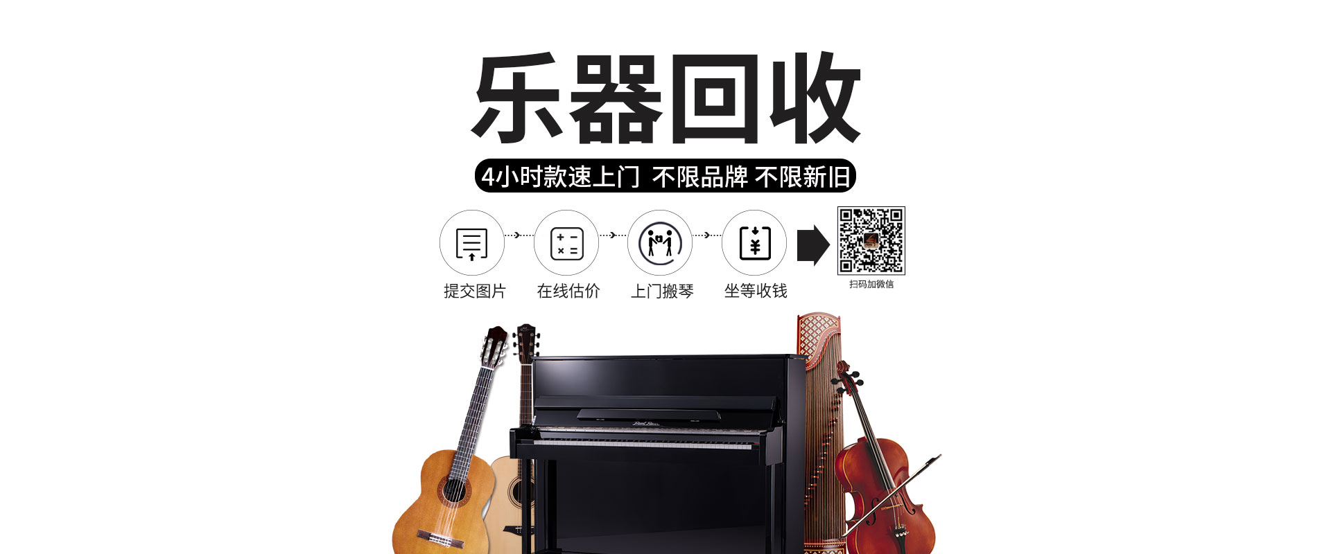 步骤:1、提交图片;2、在线估价;3、上门搬琴;4、坐等收钱;